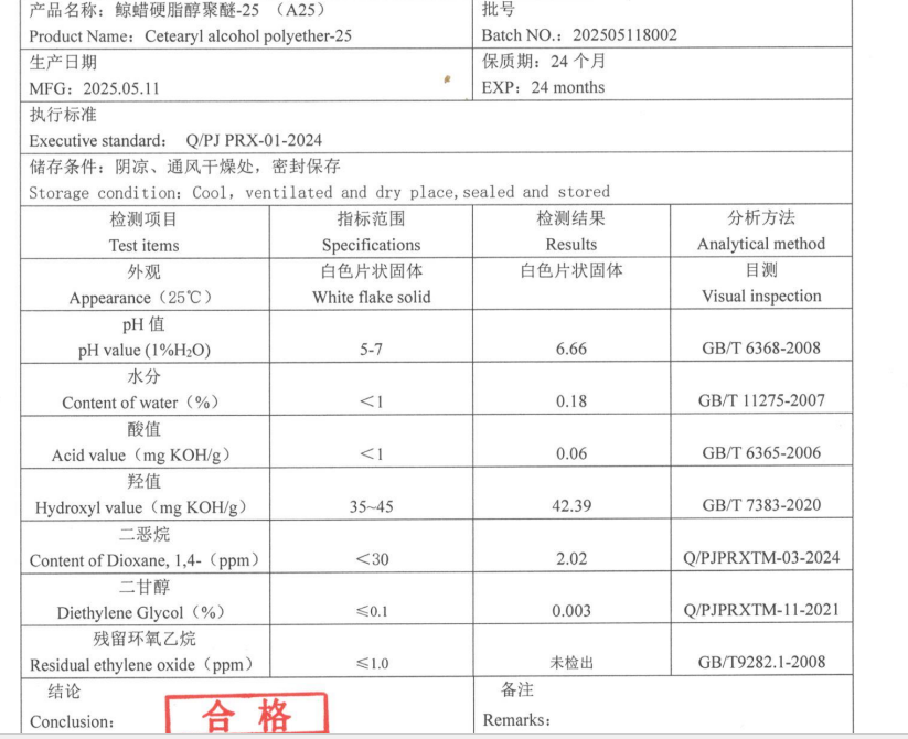 Our Ceteareth-25 is produced under strict quality control systems, guaranteeing batch-to-batch consistency and meeting the high standards of cosmetics, personal care, and industrial sectors.